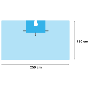 Telo di isolamento verticale trasparente con fenestrazione e area da incisione di 38×26 cm., sacca di raccolta liquidi, reggitubi e sacche laterali.
